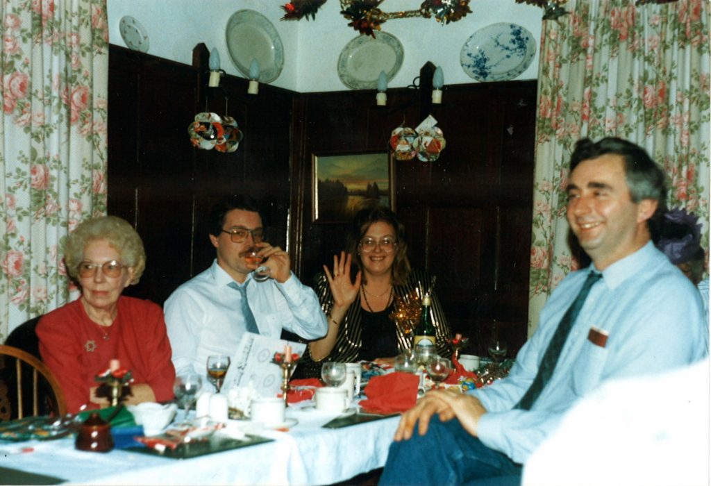 Dudley 1986Faust Lager Advert 1986Dudley & Anouska at the niece Jean’s wedding to Andy Smees on 16th July 1988 at St Clare, Warren Park. Also in the photo are Dudley’s brothers John & Richard, Sisters Pam & Moira & his nephews Simon & James.Dudley singing at a Tea Room in Wickham with Simon LongDudley with sister Pam & her 1st husband Dave Donnelly, Tea rooms WickhamDudley singing again at the Tea Rooms WickhamDudley at Christmas. At his brother Richard’s house in Ramsdale Avenue with Tommy the CatDudley as PC BrightDudley at the same Register Office, St Michaels Road, Southsea. He is holding his great nephew, Alexander James William Smees. This was his sister Moira’s 2nd wedding to Stephen Foster in 1992.