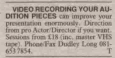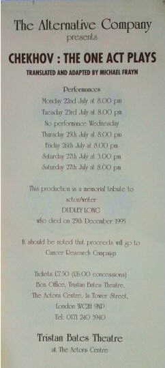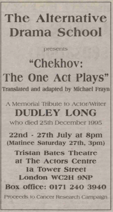 An Advert in the Stage after Dudley had died – Thursday 18 July 1996