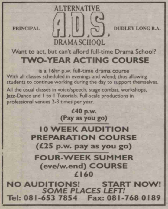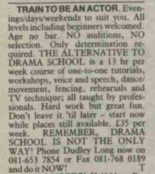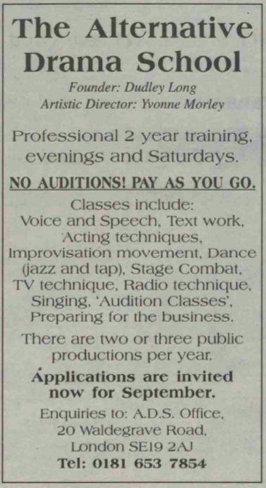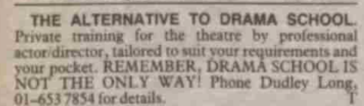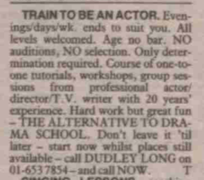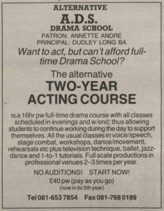 Dudley founded his own Drama School called the Alternative To Drama School & then it became just the Alternative Drama School (A.D.S.). He provided tuition to would be actors to fit in with their lifestyle & at a price they could afford. Annette Andre became a Patron.