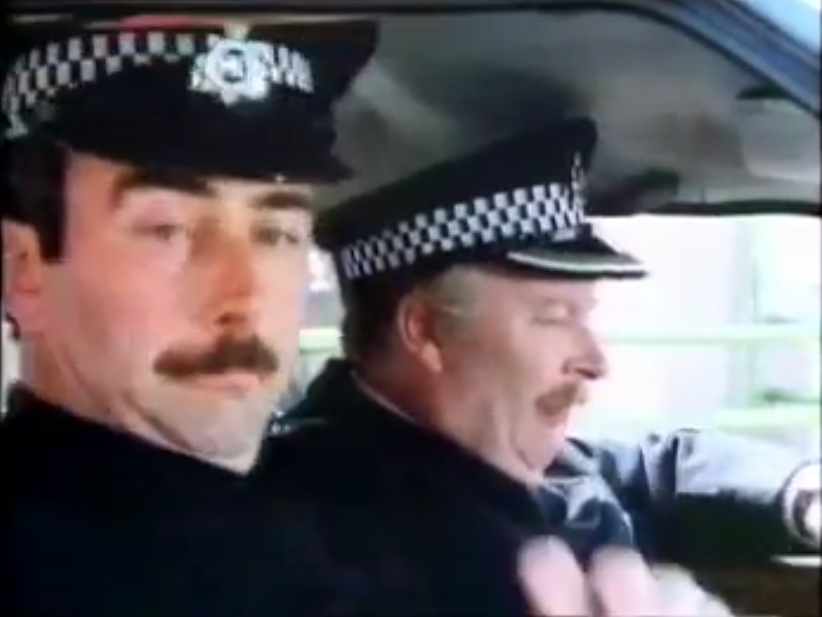 Another scene showed the Police shining a touch on Lester’s tax disc. The moment the church clock struck midnight on the day the disc expired they cried “Book ‘im”…..